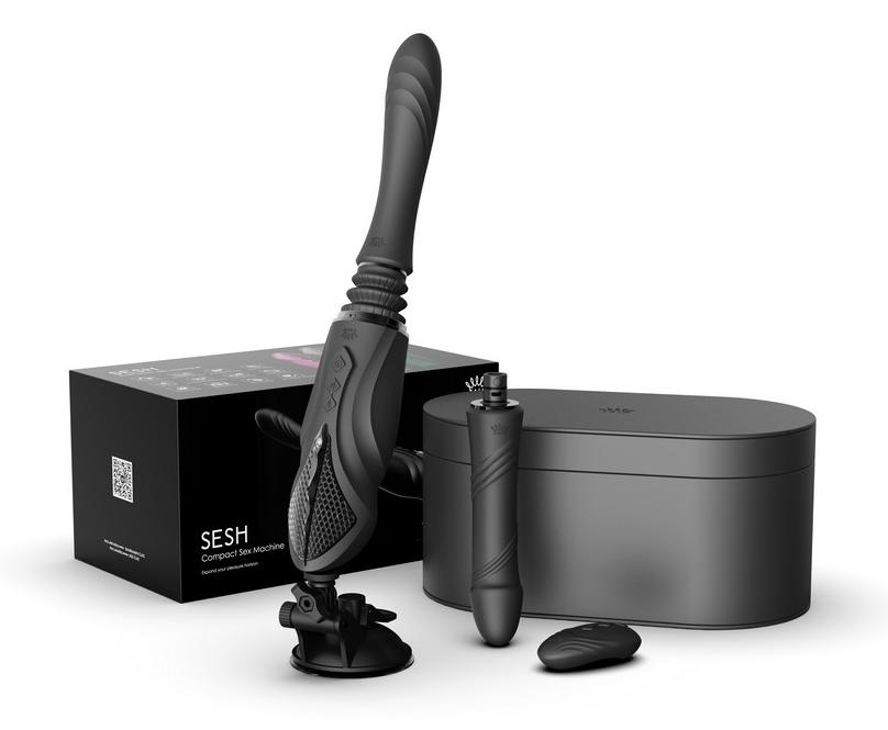 Компактная секс-машина с функцией нагрева, двумя насадками и присоской Zalo SESH, черная